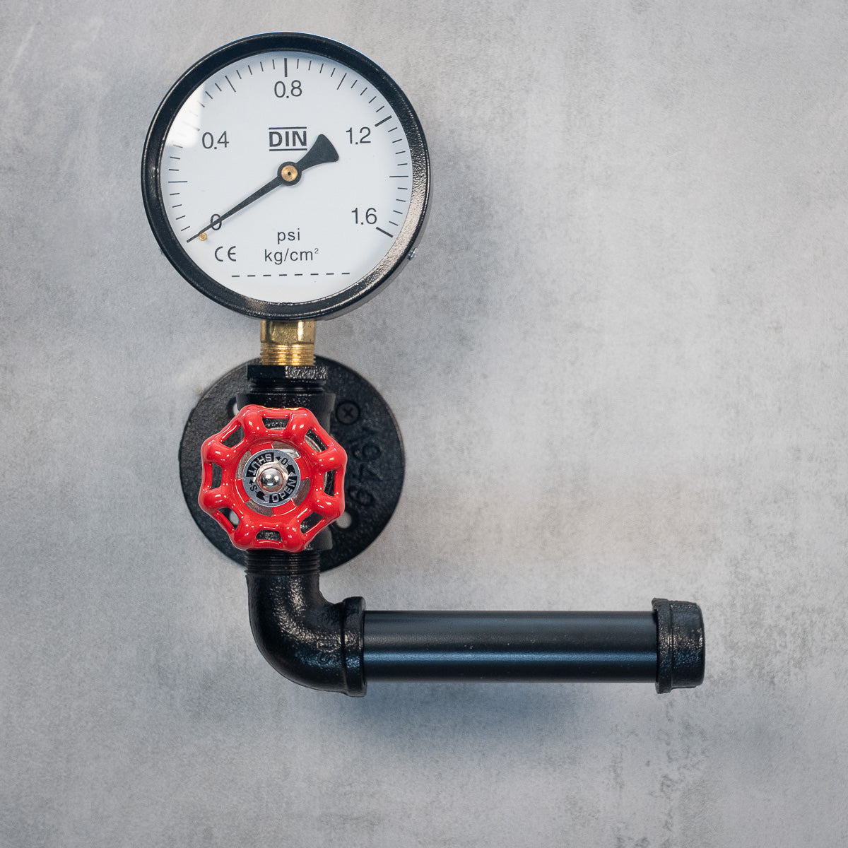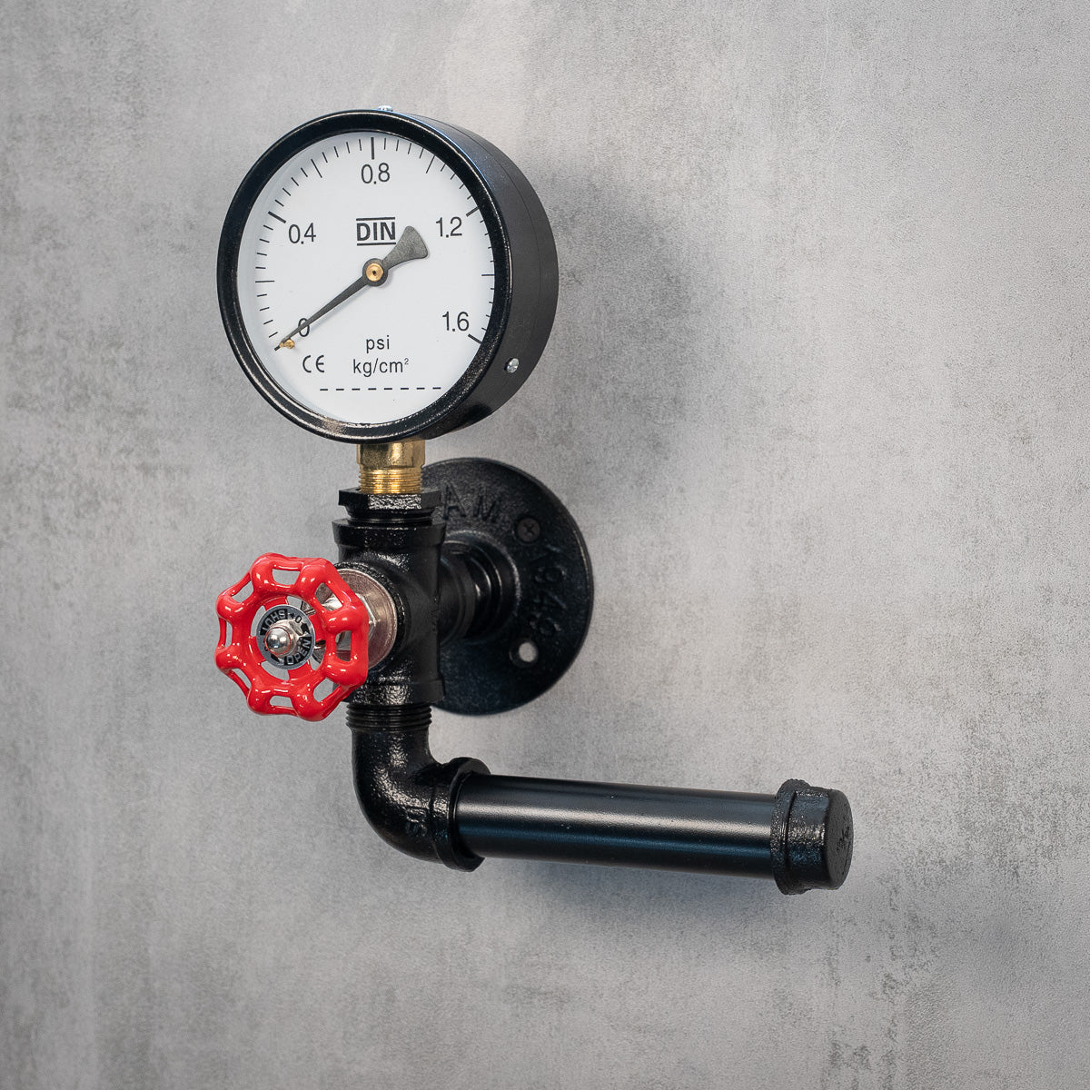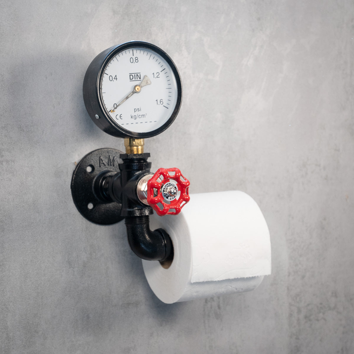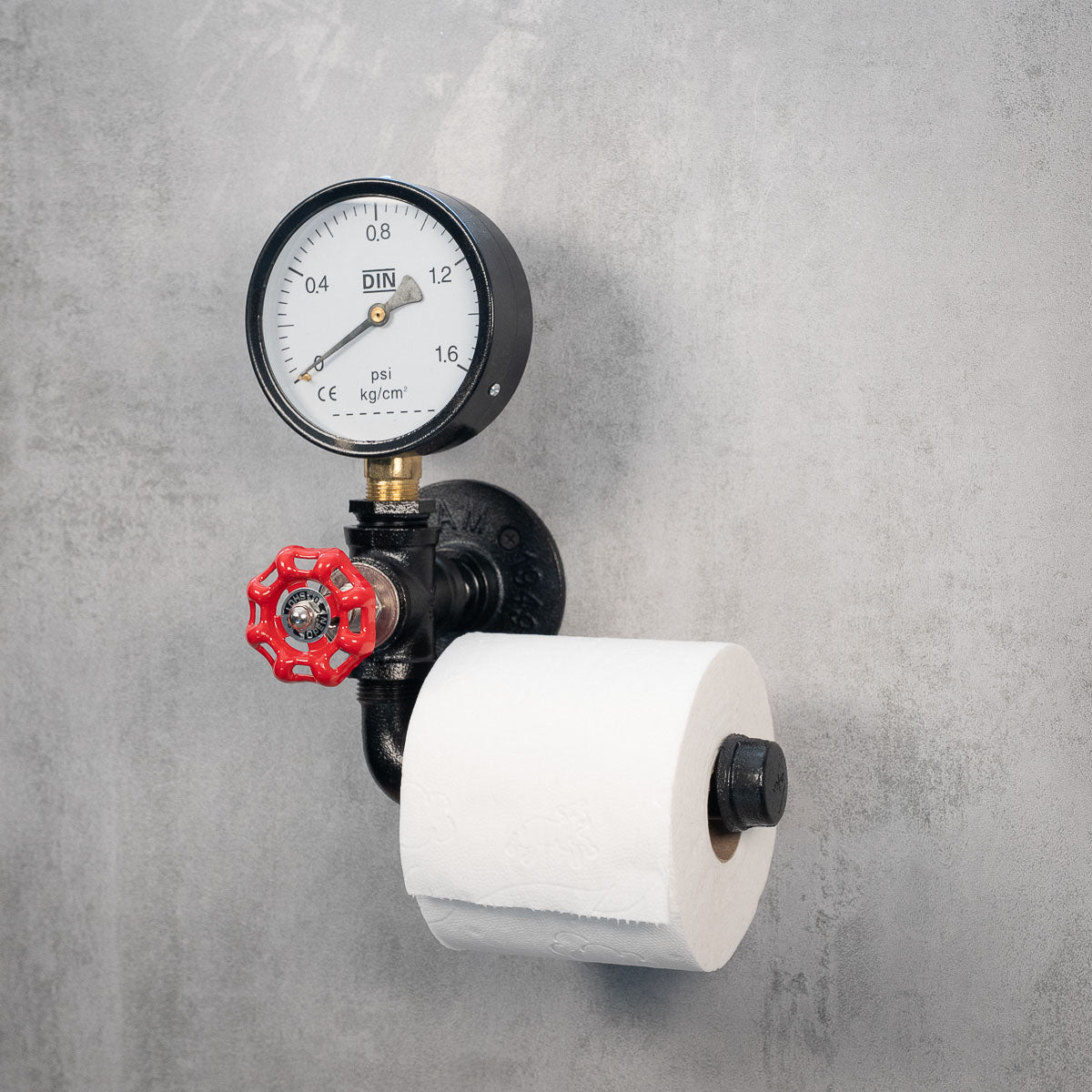 RebelRoll er en toiletpapirholder til dig, der ønsker noget mere end bare det praktiske. Den robuste konstruktion i sortlakeret stål prydes af både en dekorativ trykklokke og et rødt håndhjul – to detaljer, der sammen skaber en tydelig industrifølelse med inspiration fra steampunk og gammel maskinteknik.