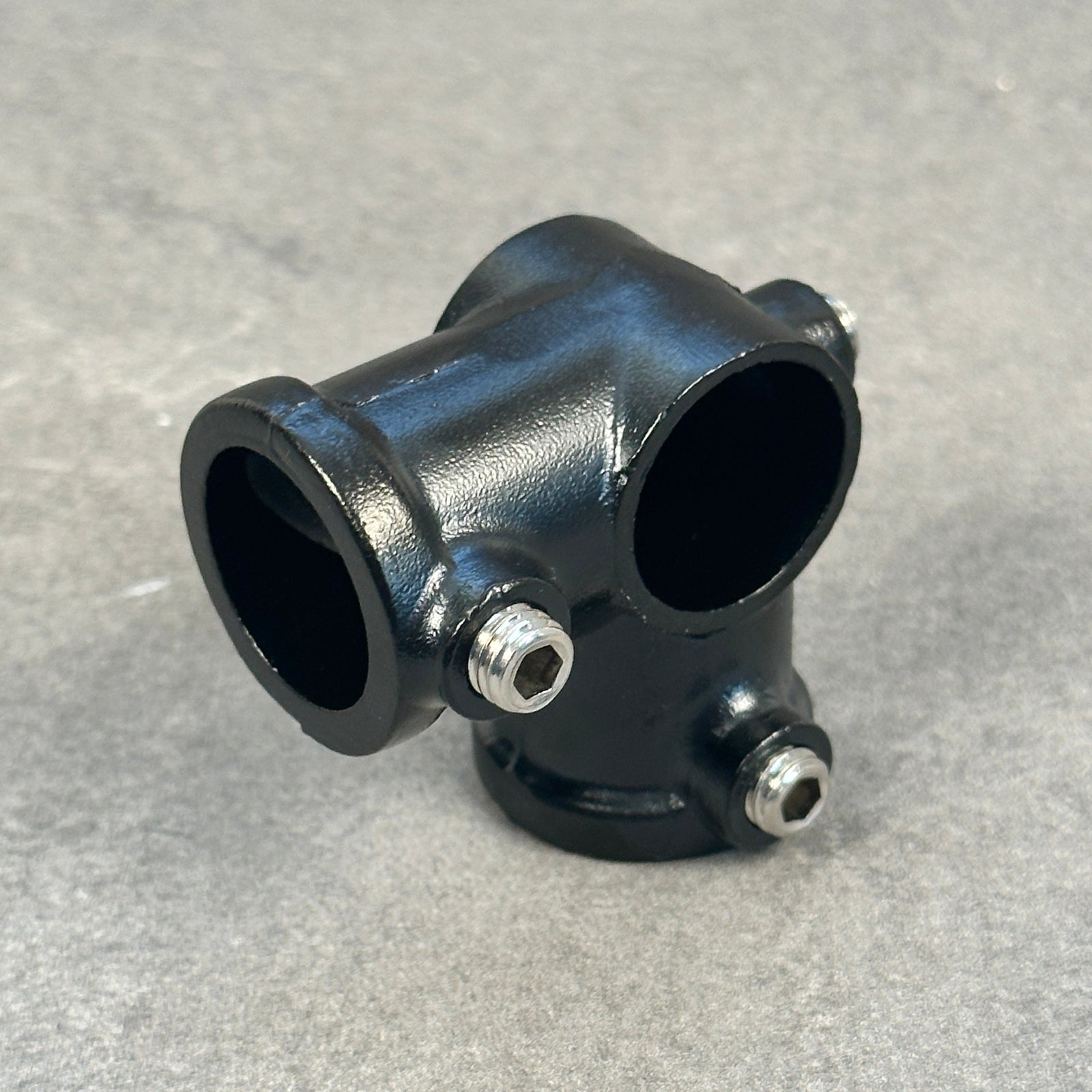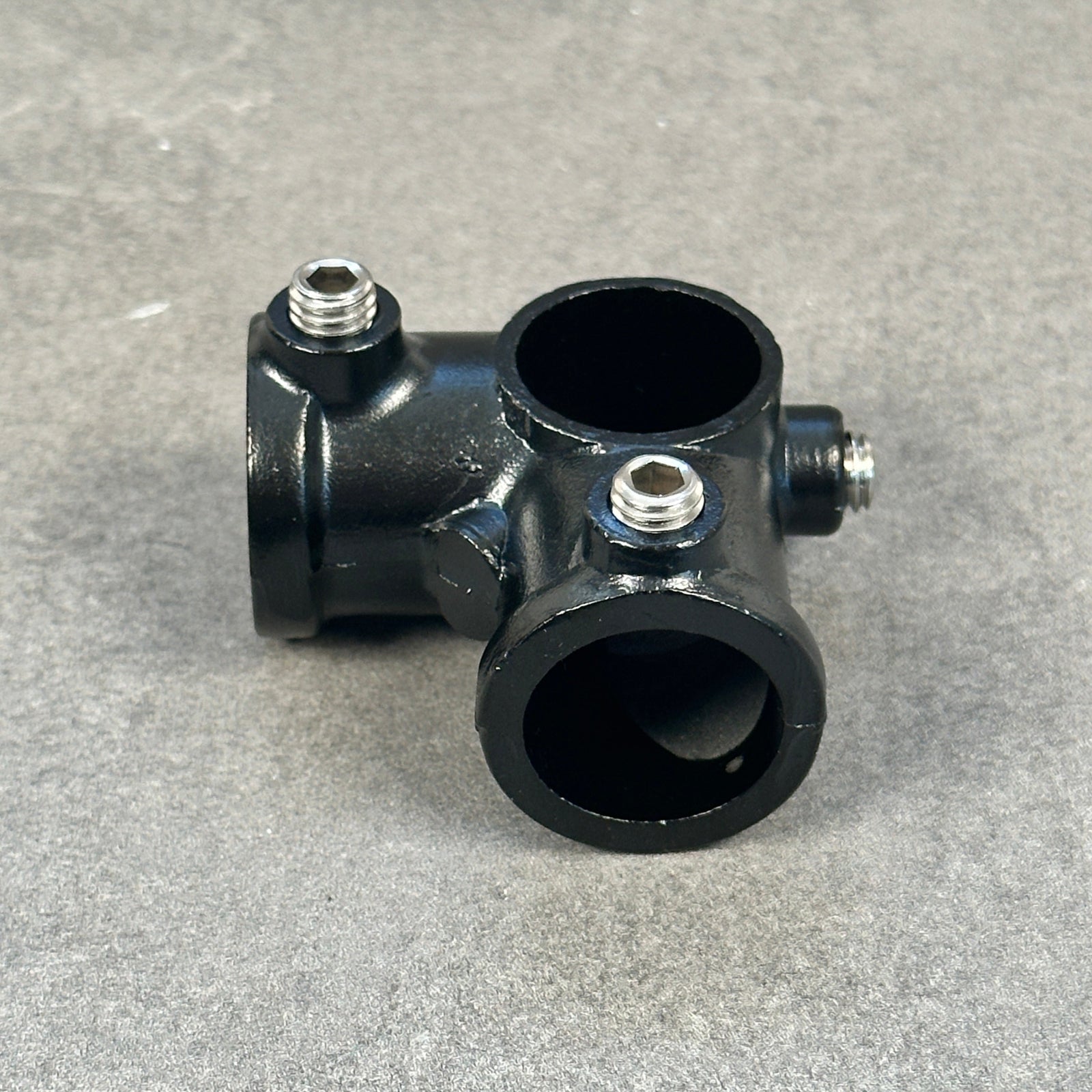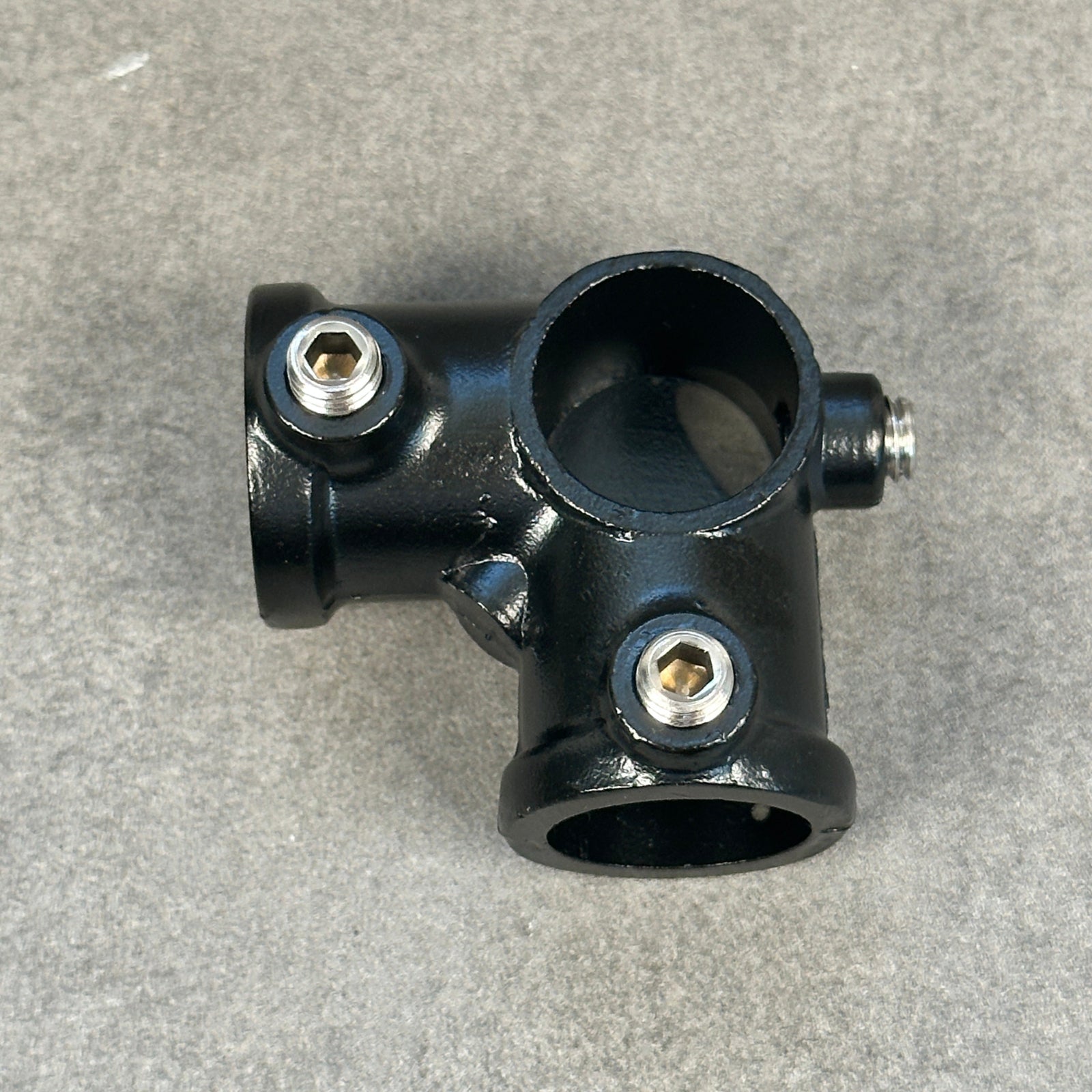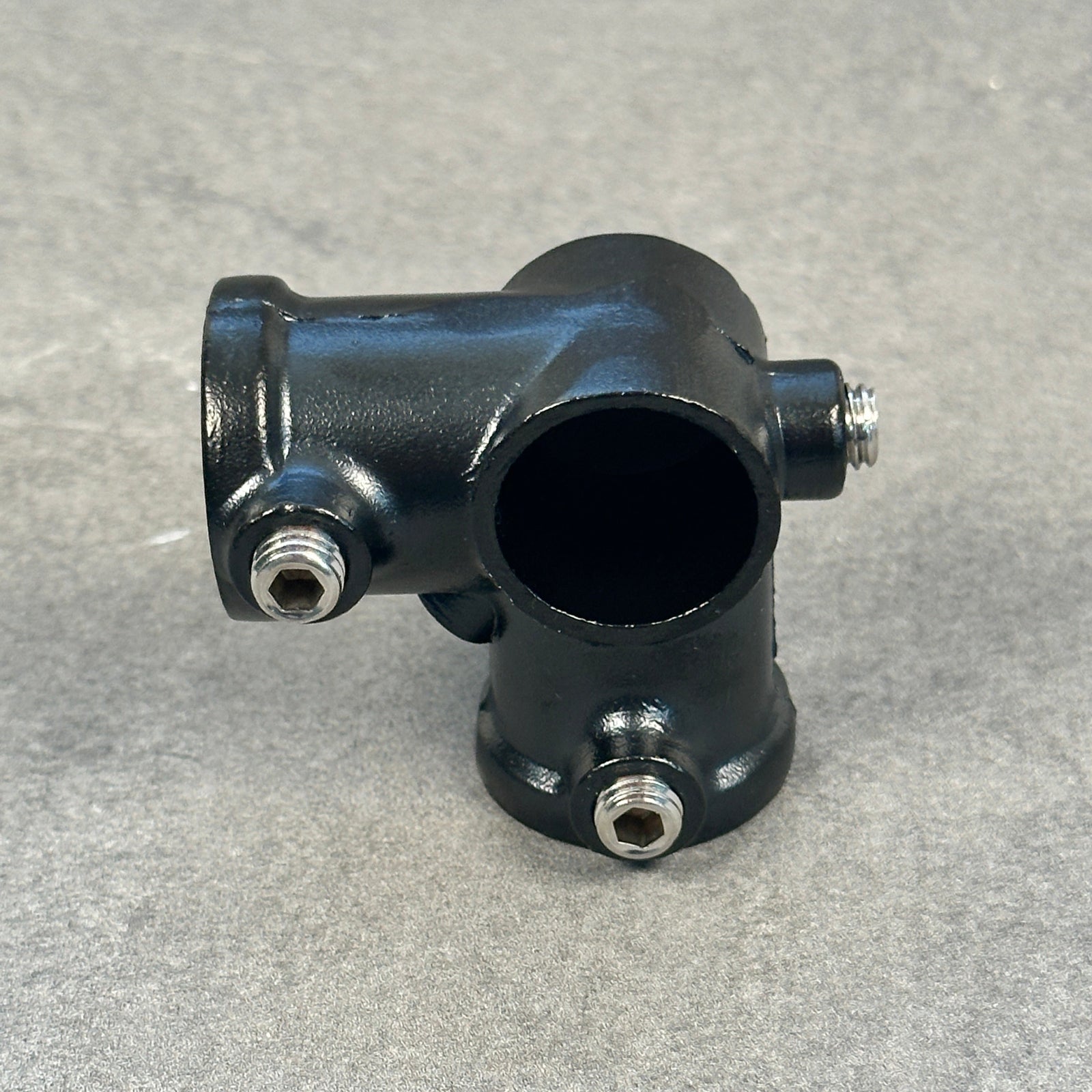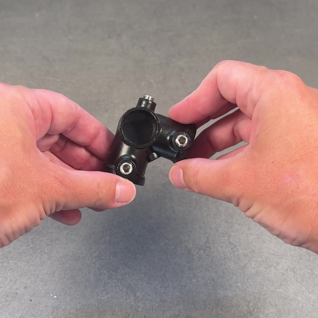 Denna slitstarka tre-koppling är en smart lösning för dig som vill bygga egen inredning med industriell känsla. I stället för gängade ändar skjuts röret enkelt in i kopplingen och fixeras med en låsskruv. Här sitter den mittersta låsskruven på utsidan, vilket ger enkel åtkomst och gör monteringen smidig även på trängre ytor. Perfekt när du vill skapa exempelvis hyllor, ställningar eller andra kreativa konstruktioner.