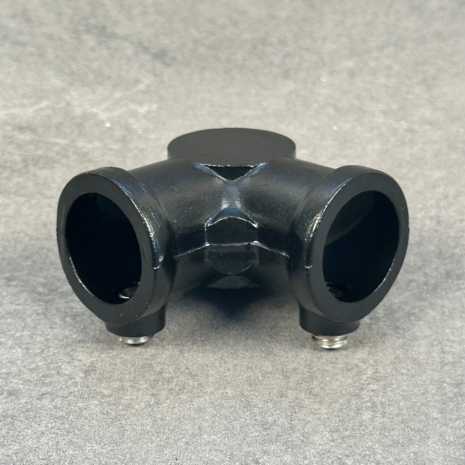 Alla tre öppningar har invändig skruvgänga och är anpassade för Piperebels rör med 20 mm tjocklek. Den pulverlackerade svarta finishen kombinerar ett elegant utseende med hög slitstyrka och lång hållbarhet. Oavsett om du siktar på ett rustikt uttryck, en renodlat industriell look eller en mer lekfull steampunk-stil, blir denna koppling ett pålitligt val.